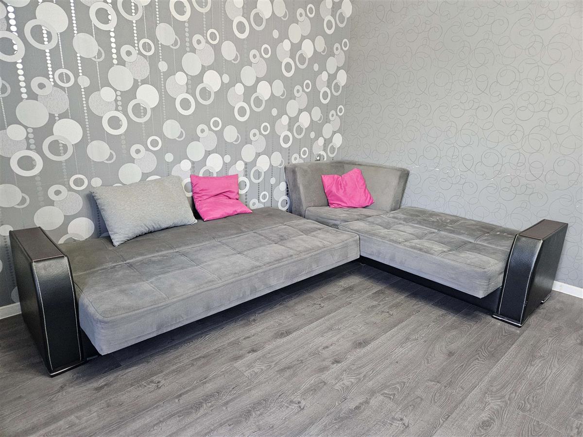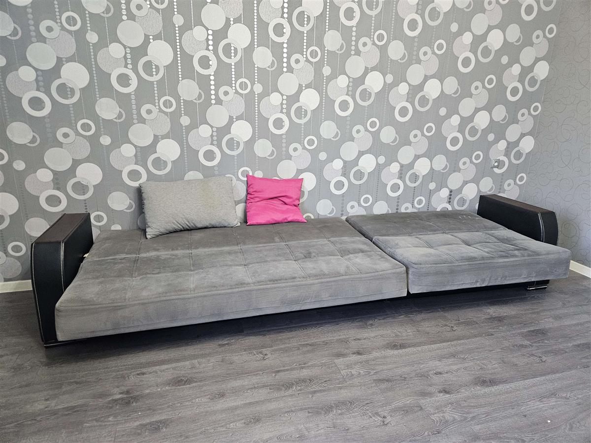 კომფორტული და მყარი, აქვს ქვედა საცავი (საბარგული). მდგომარეობა კარგი. სიგრძე 420 სმ, სიგანე 50 სმ, სიმაღლე 85 სმ. გაშლილ მდგომარეობაში სიგრძე 310 სმ, სიგანე 110 სმ. Show original