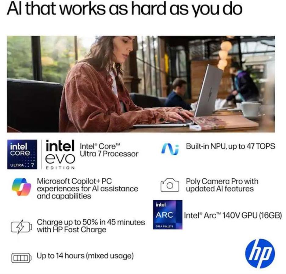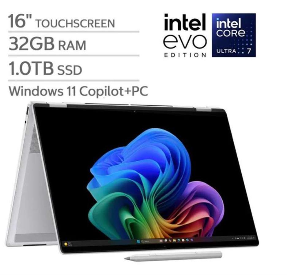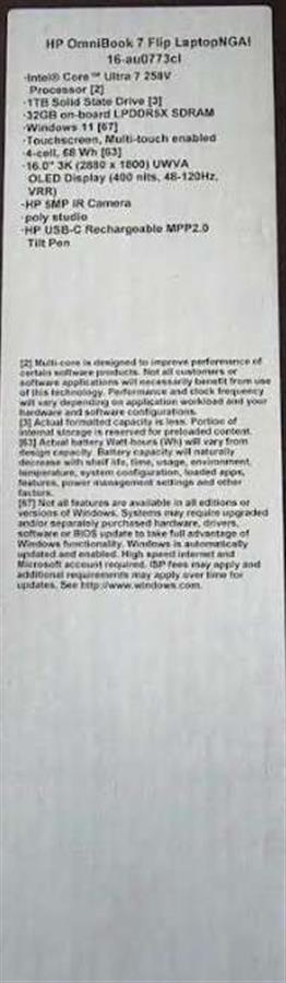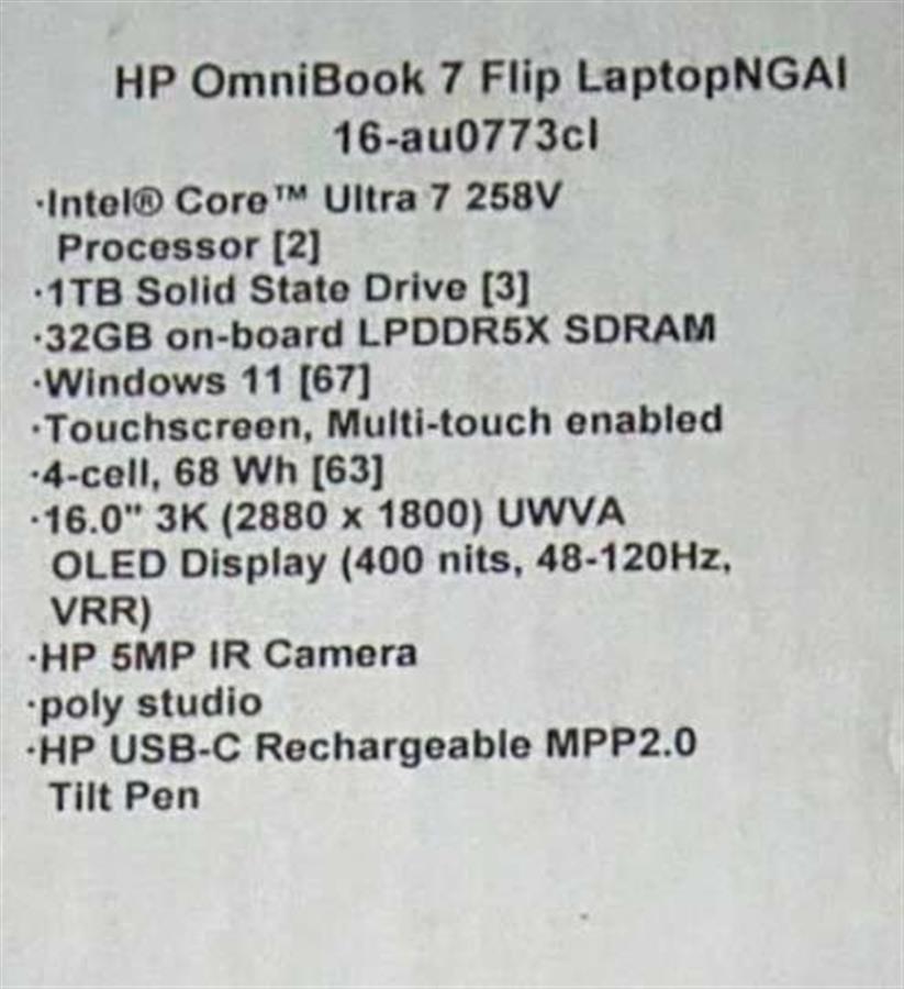 HP OmniBook 7 Flip 16” 2-in-1 360 AI laptop EVO Platform , Intel Core Ultra 7 258V – series 2 – Copilot+PC – 3K OLED Touchscreen – 32GB. Memory: 1TB – SSD with PEN.