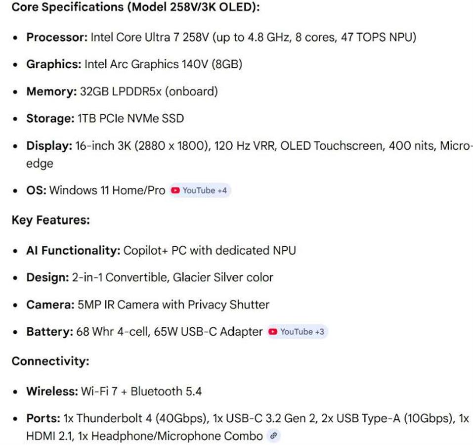 ძალიან ძლიერი მონაცემები. ეკრანი - TOUCH, იკეცება სრულად 360 გრადუსი. და ხდება როგორც პლანშეტი. მოყვება თავისი პასტა, რომელიც იტენება და მაგნიტურად მაგრდება ლეპტოპზე, რომლითაც შეძლებთ ხატვას და მუშაობას. კლავიატურის განათება, სტერეო დინამიკები და ა.შ.