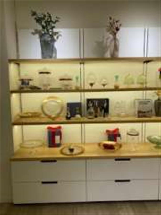 17 თარო განათებით მაღაზიის 2 ნიშა, სალაროს მაგიდა, საპრეზენტაციო გონდოლა, საპრეზენტაციო სტენდი და მაგიდა. Show original