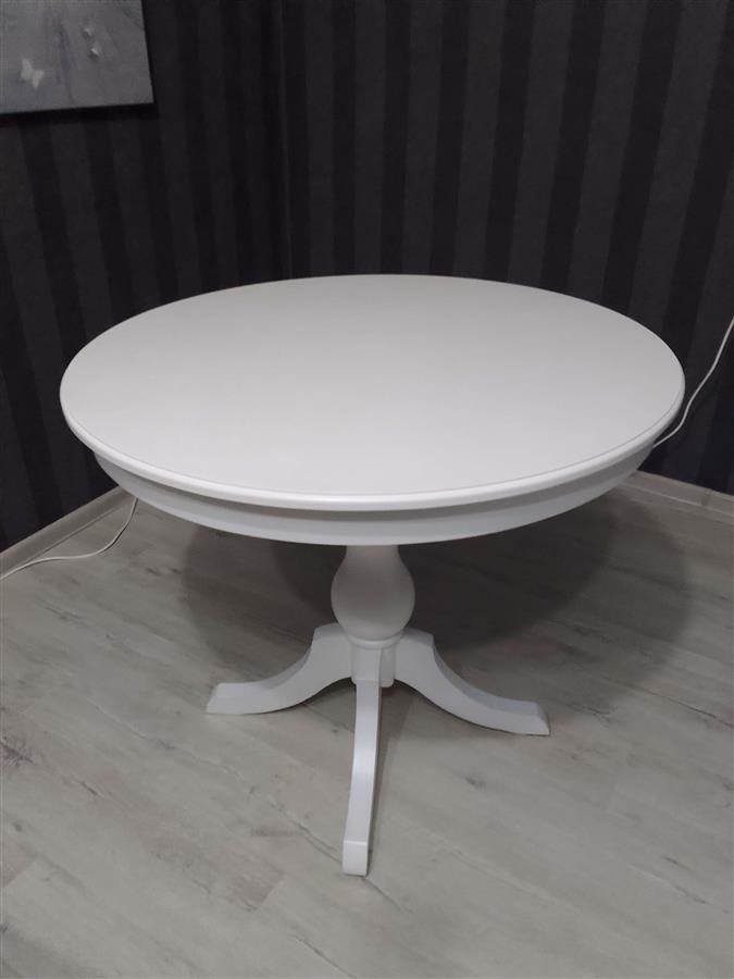 იყიდება მისაღების თეთრი მაგიდა, მეორადი ახალივით, დიამეტრი 90 სმ. ფასი 450 ლარი Show original