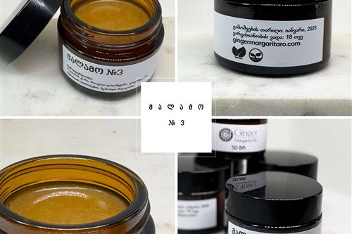 მალამო №3 — ცადამყვანას ბაზაზე, წაულასის ცხიმით და ეთერზეთებით, რომელიც უზრუნველყოფს კანის აღდგენას, დამწვრობის მკურნალობას და UV 50 დაცვას. იდეალურია ეგზემის, ნაკაწრების და მზის დამწვრობის დროს.