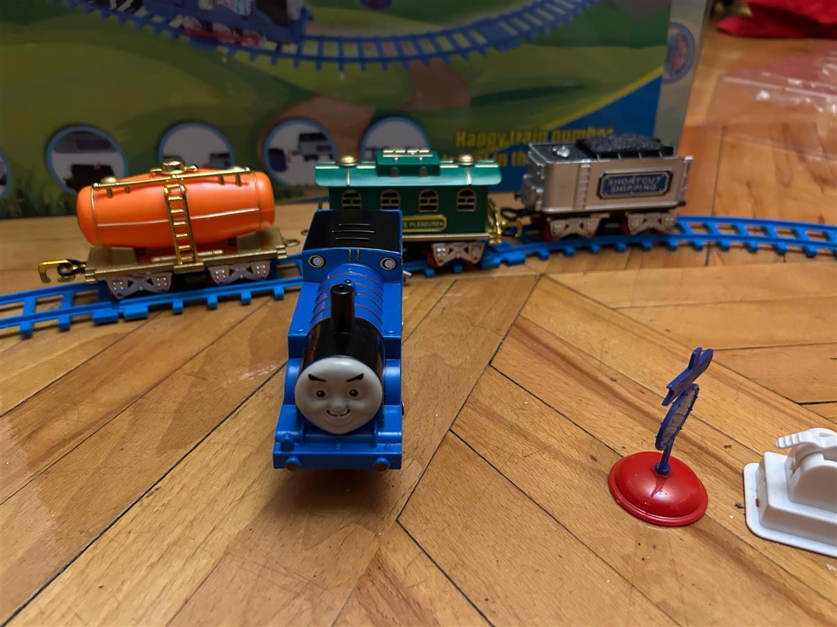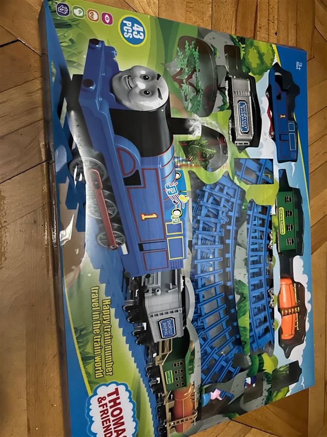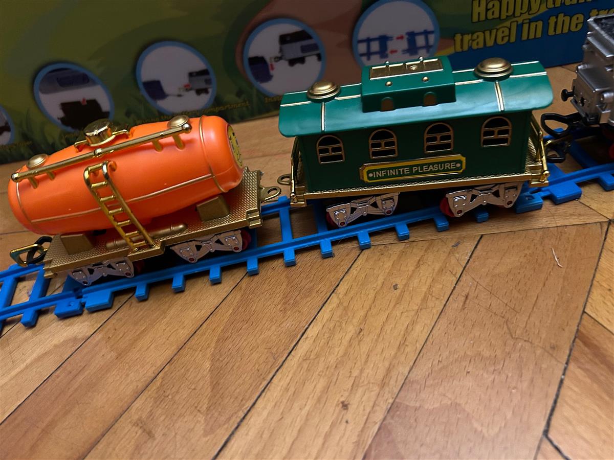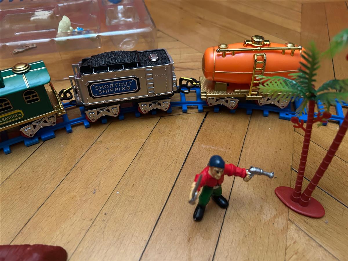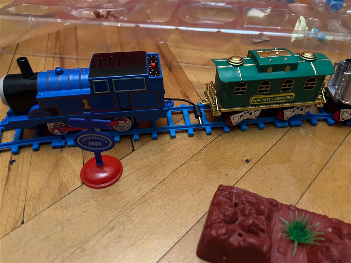 ან მაგიდაზე ან იატაკზე ლიანდაგები და მატარებელი, მუშაობს ბატარეიჯებზე Show original