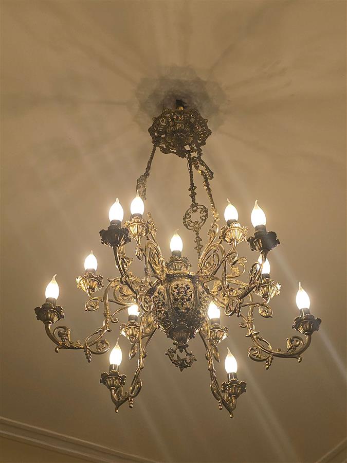 იყიდება მძიმე კლასიკური ბრინჯაოს ჭაღი ულამაზესი ორნამენტებით , 13 ნათურიანი Show original