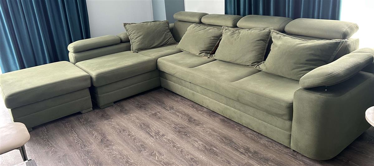 იყიდება მეორადი დივანი და პუფი. დივანი იშლება. აქვს სათავსო. დამატებითი სათავსო აქვს პუფსაც. ზომები: პუფი - 80 სმ /80 სმ, დივანი - 310 სმ / 180 სმ. ფასი 350 ლარი. Show original