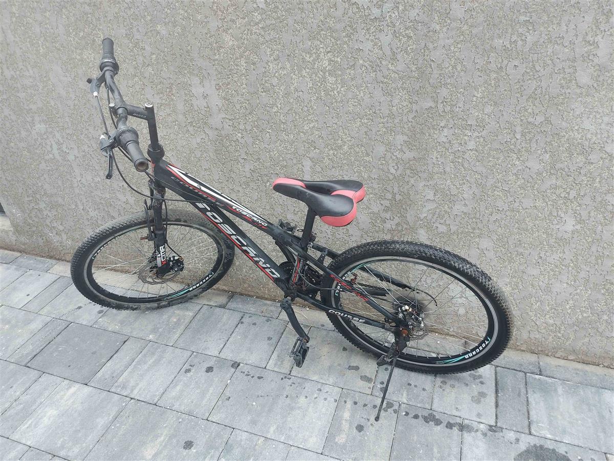 შავი ფერის ველოსიპედს აქვს მცირე ნაკაწრები