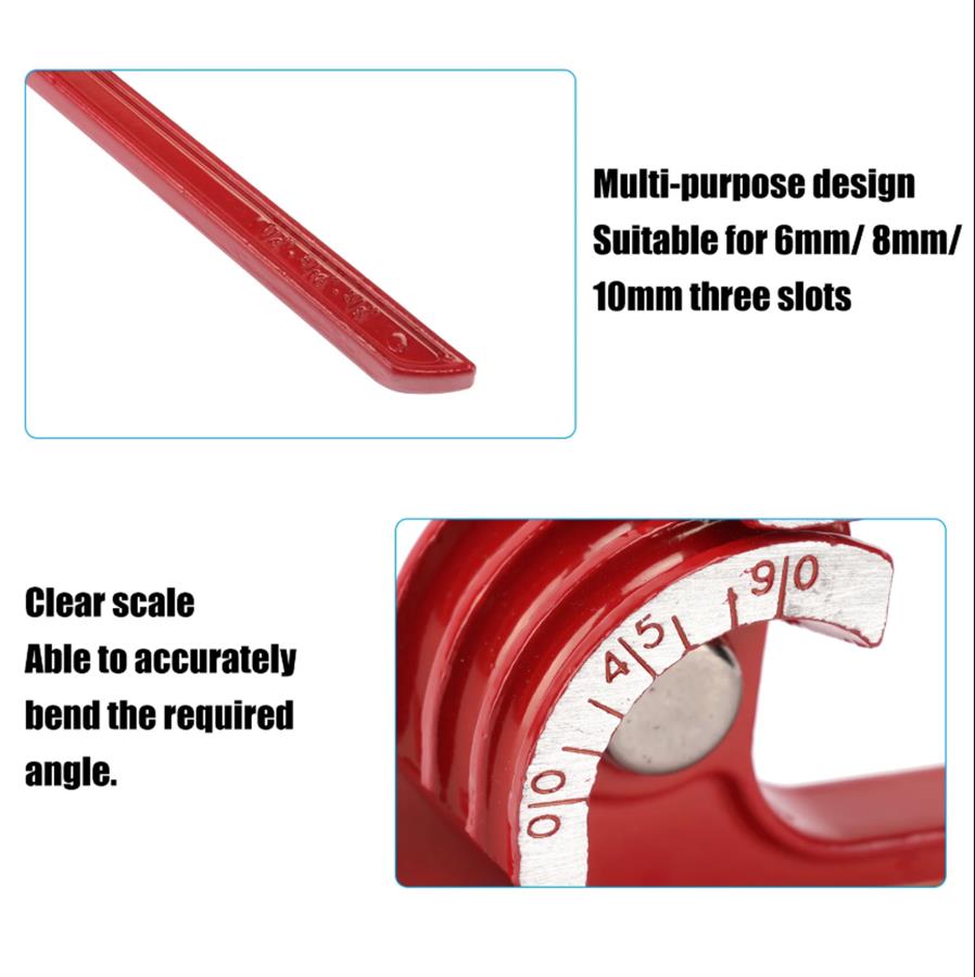 მილების მოსაღუნი ხელსაწყო 3-ში 1-ში, 90 გრადუსიანი, 6 მმ, 8 მმ და 10 მმ სპილენძის მილების