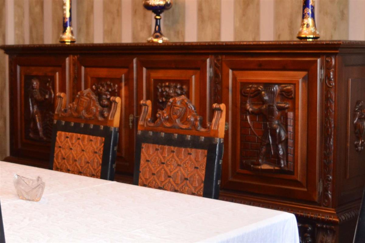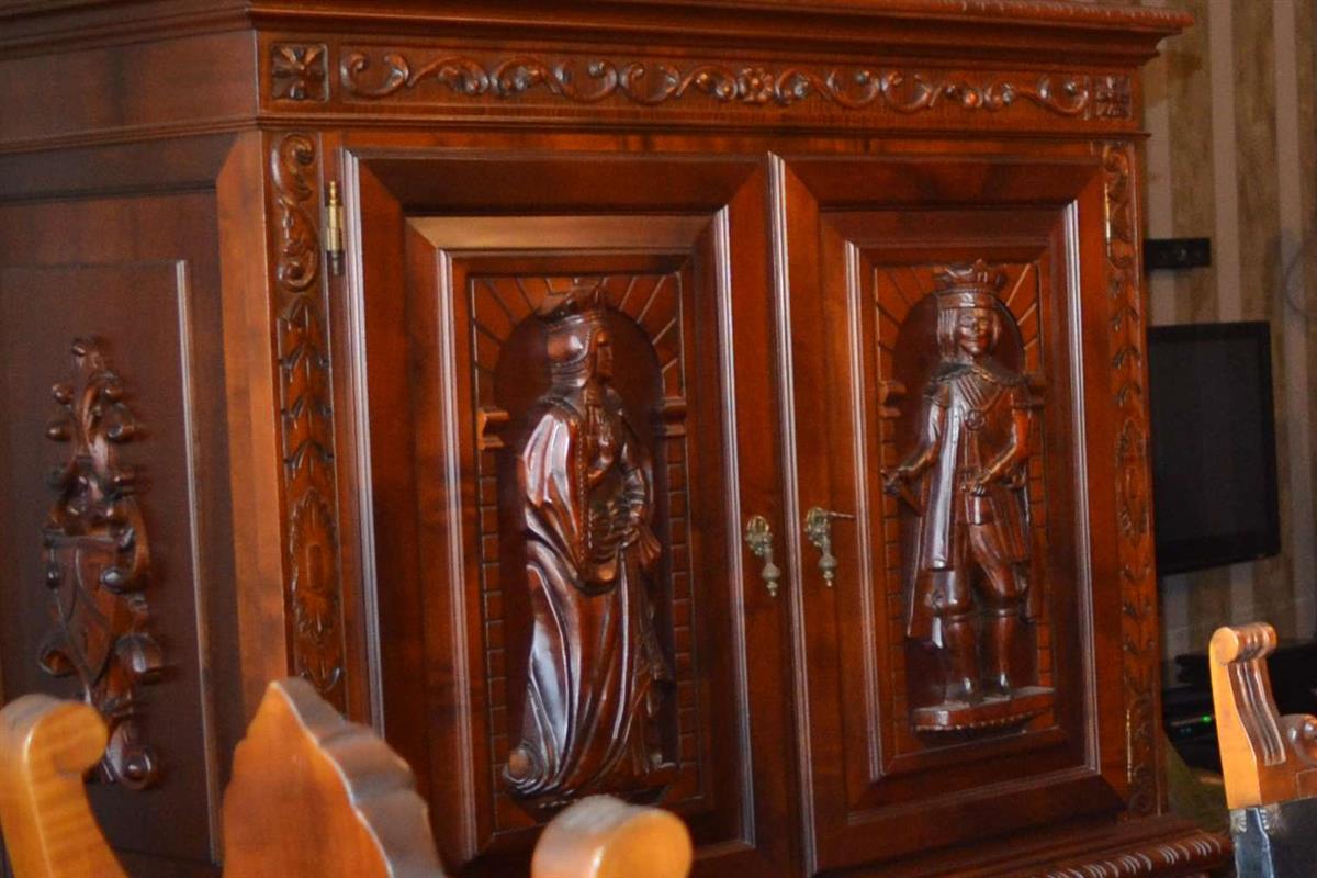 ესპანური რენესანსი, იდეალურ მდგომარეობაში, დააკვირდით ფიგურებს არის გაცილებით რელიეფური და დახვეწილი ნამუშევარი, რუმინული ვერსიისგან განსხვავდება ფერითაც და ხარისხითაც, სკამებიც სხვანაირია - ტყავის, ლომების და კოშკების გამოსახულებით.