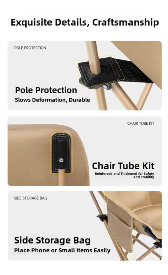 ულტრა-მსუბუქი პორტატული გარე სკამი, Moon ape, რეგულირებადი დასაკეცი სავარძელი პიკნიკისთვის, მაღალი საყრდენით, დასაკეცი