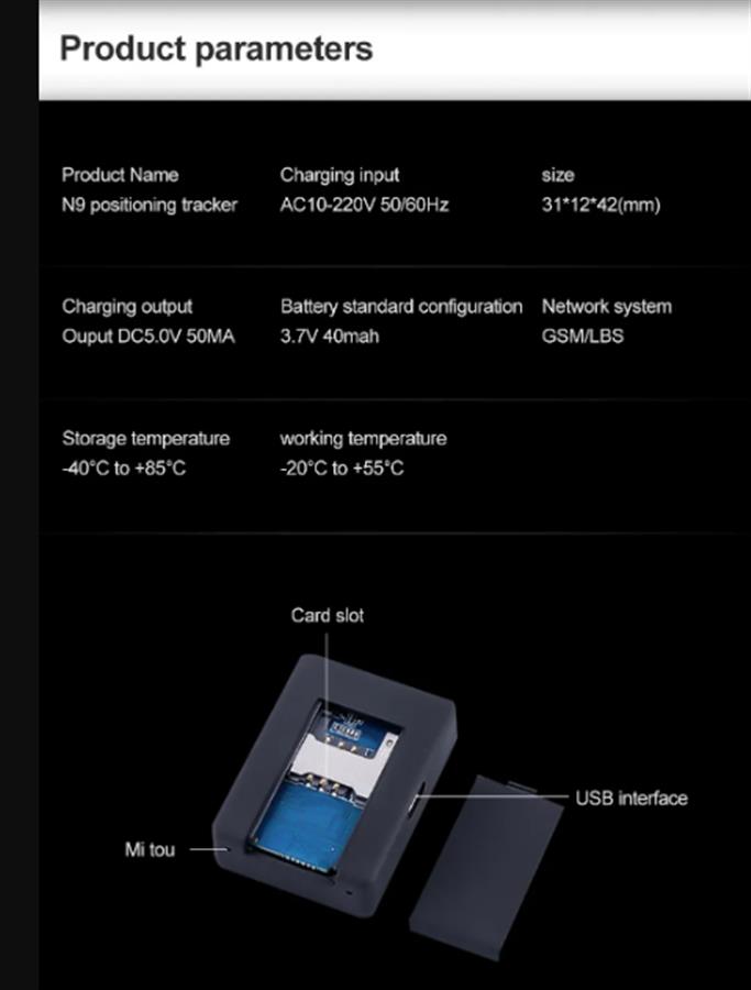 N9 უსადენო GSM მოსასმენი აუდიო მანქანის GPS ტრეკერი რეალურ დროში