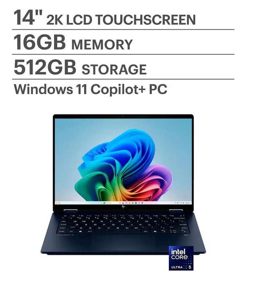 HP OmniBook X Flip 14-inch 2-in-1 – 360 - with PEN, Intel Core Ultra 5 226V processor, 16GB of high-speed RAM, and a versatile 2-in-1 convertible design.