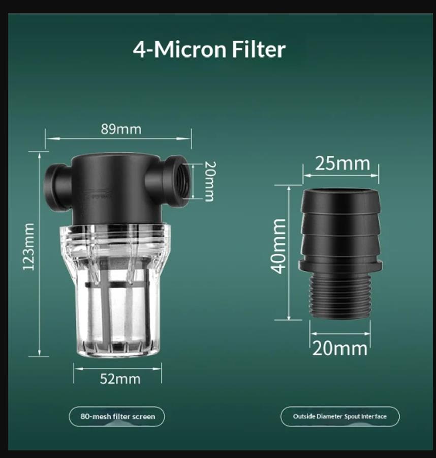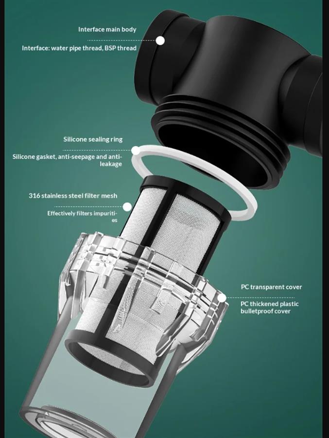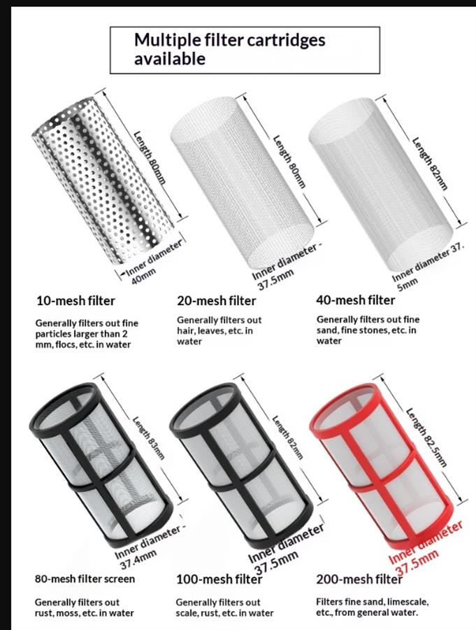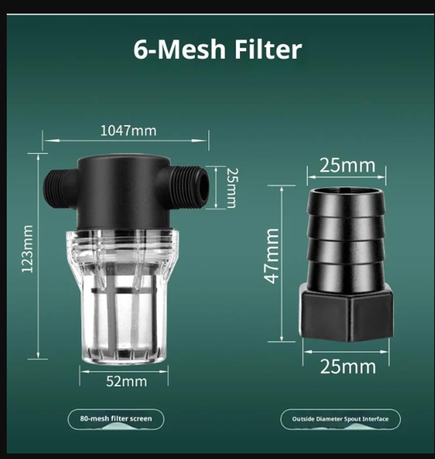 ონკანის წყლის მილი, წყლის გამწმენდი, წინასწარი ფილტრი, სასოფლო-სამეურნეო სარწყავი მანქანა, თევზის აკვარიუმი, 4 დიუმიანი, 6 დიუმიანი ნალექის ფილტრის ბადე