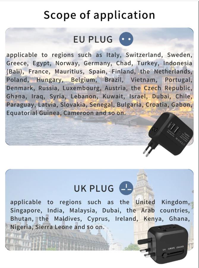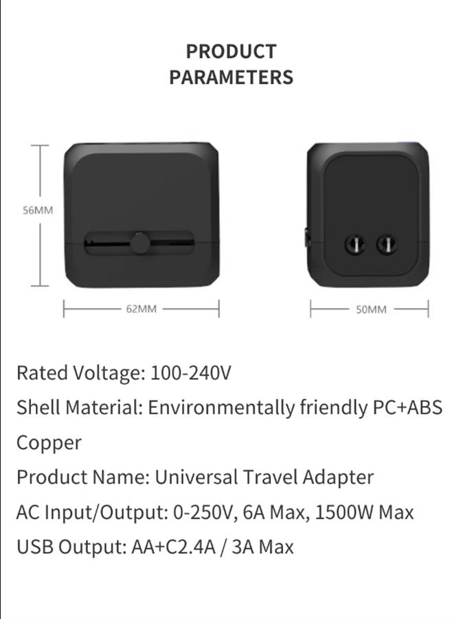 პროდუქტის დასახელება: უნივერსალური სამოგზაურო ადაპტერი