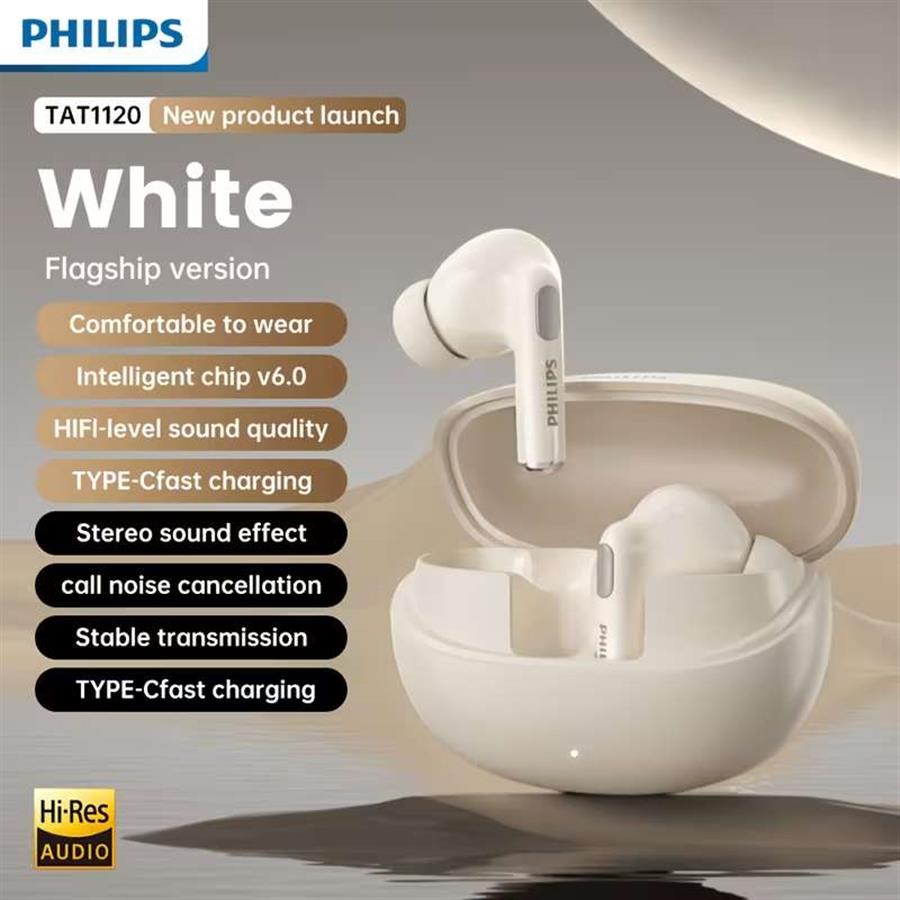 Philips T1120, ფილიპსის ყურსასმენები, უსადენო ყურსასმენები, TWS ყურსასმენი, Bluetooth 6.0, ყურსასმენი ხმაურის ჩახშობით, Philips Audio Show original