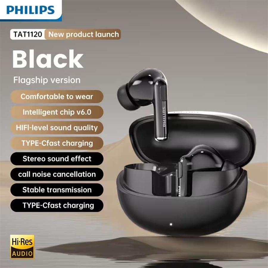 Philips T1120 TWS უსადენო ყურსასმენები: განახლებული V6.0 კავშირი, ხმაურის ჩახშობა და სენსორული მართვა. ელემენტის გახანგრძლივებული მუშაობის დრო და Type-C დატენვა.