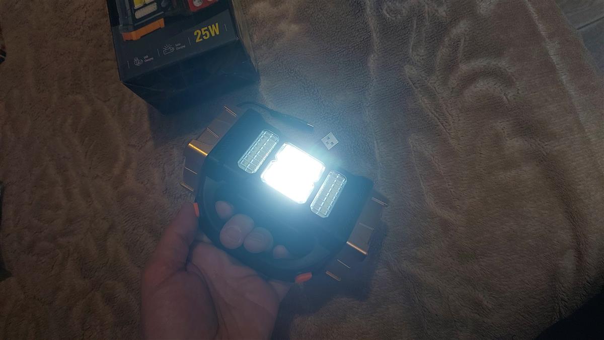 იყიდება პორტატული მზის ფანარი USB დამუხტვით კემპინგისა და თევზაობისთვის. Show original