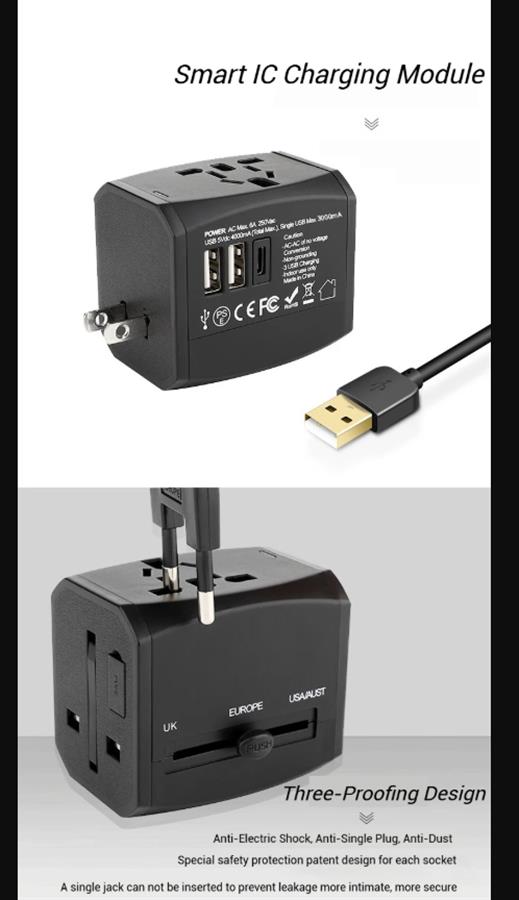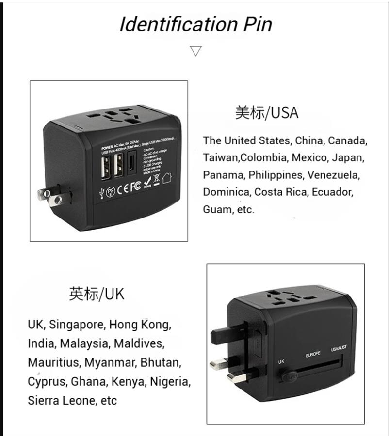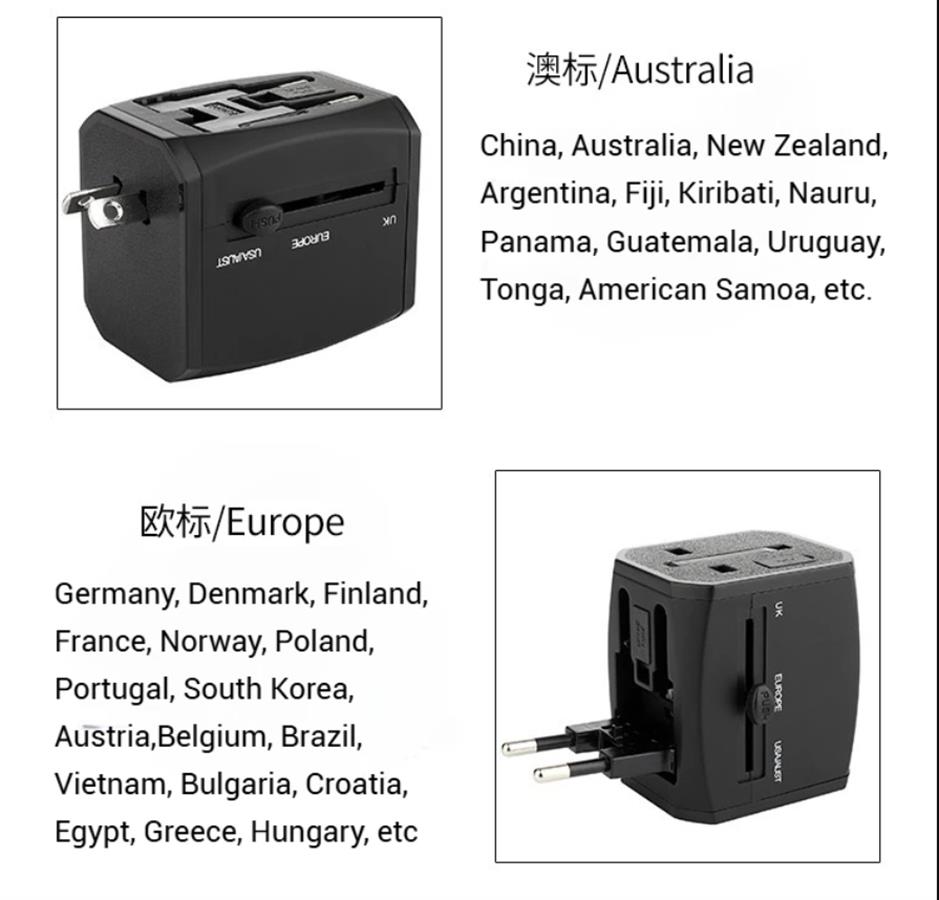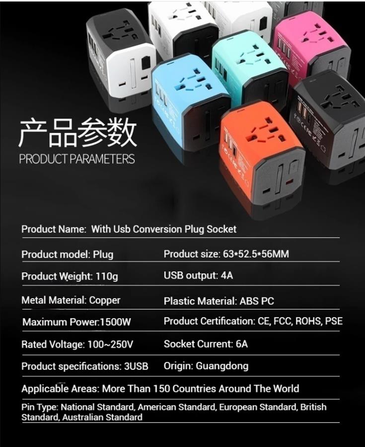 საერთაშორისო უნივერსალური 100-250V შტეფსელის ადაპტერი სამოგზაურო ადაპტერი 3USB სამოგზაურო დამტენი სადგური დიდი ბრიტანეთი ავსტრალია ევროკავშირი აშშ საერთაშორისო შტეფსელის ადაპტერი