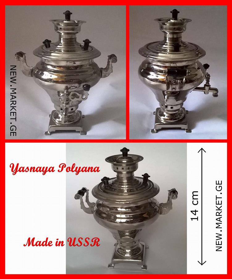 იყიდება მაღალხარისხიანი ძველებური ანტიკვარული ვინტაჟური რუსული ტულის სამოვარი სუვენირი "იასნაია პოლიანა" ("Ясная Поляна" / "Yasnaya Polyana") წარმოებულია ტულაში, რუსეთში (ტულა, რუსეთი), საბჭოთა კავშირში (Тула, Росcия, СССР). მაღალი ხარისხის იშვიათი საკოლექციო მოდელი არის ტულის სამოვრის მინიატურული ასლი, რომელიც გამოფენილია "იასნაია პოლიანა"-ს მამულის მუზეუმში (ტულის ოლქი, რუსეთი) და რომელიც დიდი რუსი მწერლის, ლ. ნ. ტოლსტოის ოჯახს ეკუთვნოდა.
