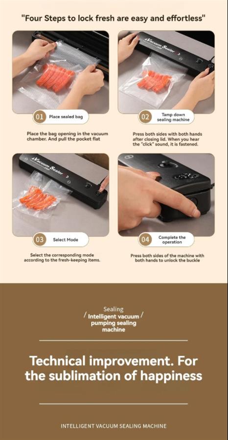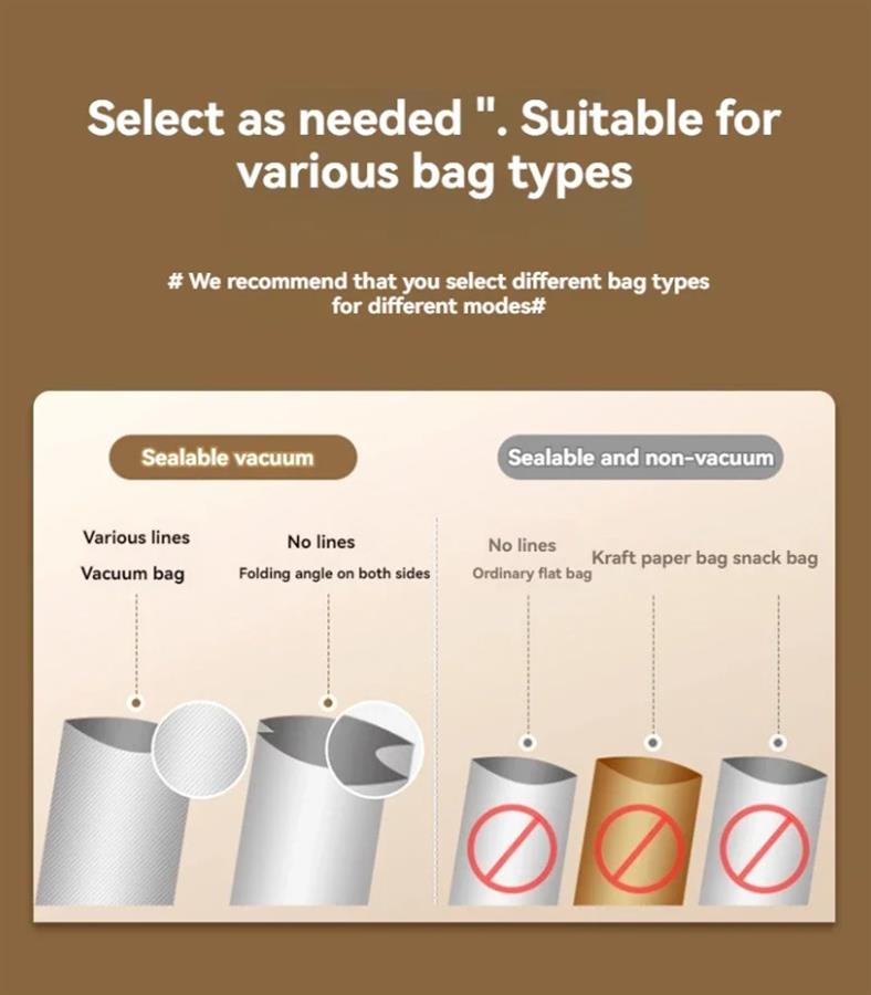 • ვაკუუმური პარკით: ვაკუუმური პარკი უზრუნველყოფს თქვენი საკვების სიახლის შენარჩუნებას დიდი ხნის განმავლობაში, ხელს უშლის გაფუჭებას და ინარჩუნებს მის გემოს.