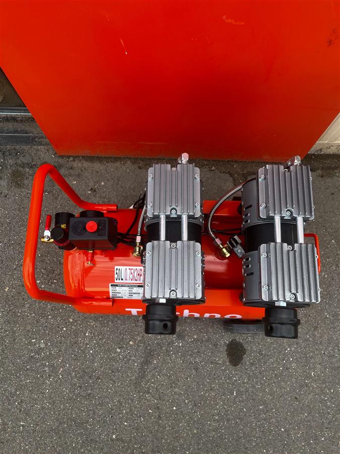 Techno-ის 50 ლიტრიანი ორძრავიანი უზეთო კომპრესორი, რომელიც მუშაობს 220 ვოლტზე და გამოირჩევა მაღალი წარმადობით. კომპრესორი გამოიმუშავებს სუფთა ჰაერს, რაც მას უნიკალურს ხდის და საშუალებას აძლევს გამოყენებულ იქნას ისეთ სენსიტიურ გარემოში, სადაც ჰაერის სისუფთავე კრიტიკულია — კლინიკებში, სტომატოლოგიურ კაბინეტებში, ლაბორატორიებში, ფარმაცევტულ წარმოებაში, სილამაზის სალონებში და კვების ინდუსტრიაშიც კი. შესაბამისად კომპრესორს არ სჭირდება ბევრი მოვლა და მუშაობს უხმაუროდ.