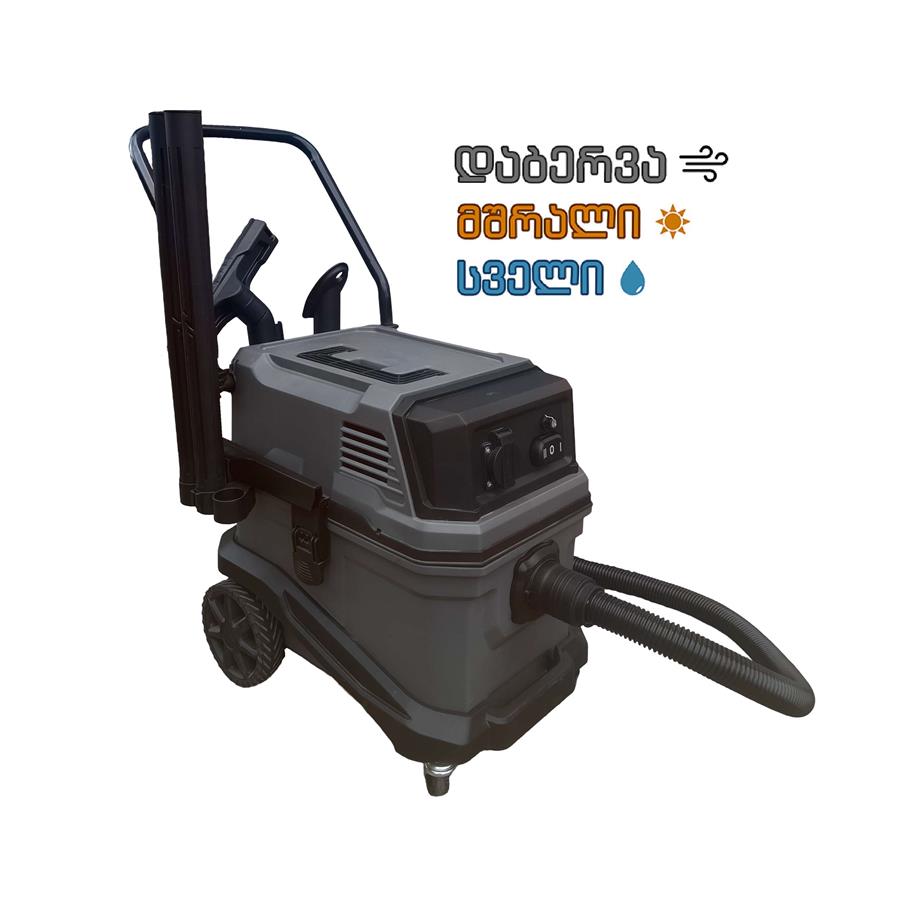 პრფესიონალური სამშენებლო მტვერსასრუტი შეუძლია როგორც მშრალი ისე სველი ნარჩენების შეწოვა, ასევე აქვს უკანა მხარეს ჰაერის დაბერვის ფუნქცია. მვერსასრუტს წინა მხრიდან აქვს როზეტი, სადაც შეგიძლია დააერთოდ თქვენი ხელსაწყო, რისი ჩართვის შემდეგაც მტვერსასრუტი ავტომატურად იწყებს მუშაობას. დამატებით შეგიძლიათ მექანიკურად მართოთ მტვერსასრუტის სიმძლავრე.