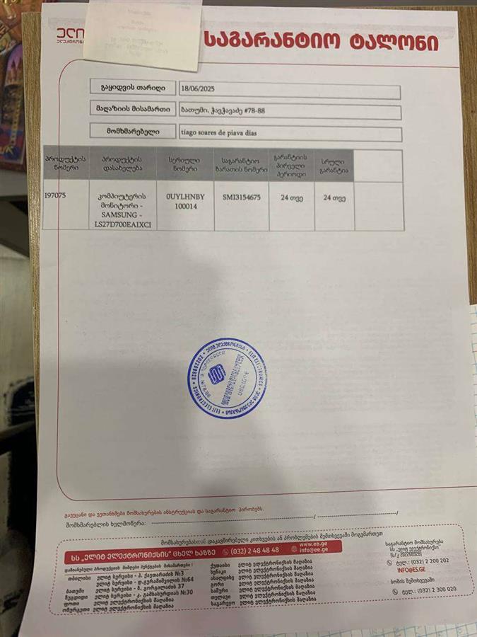 იყიდება მონიტორი SAMSUNG LS27D700EAIXCI
