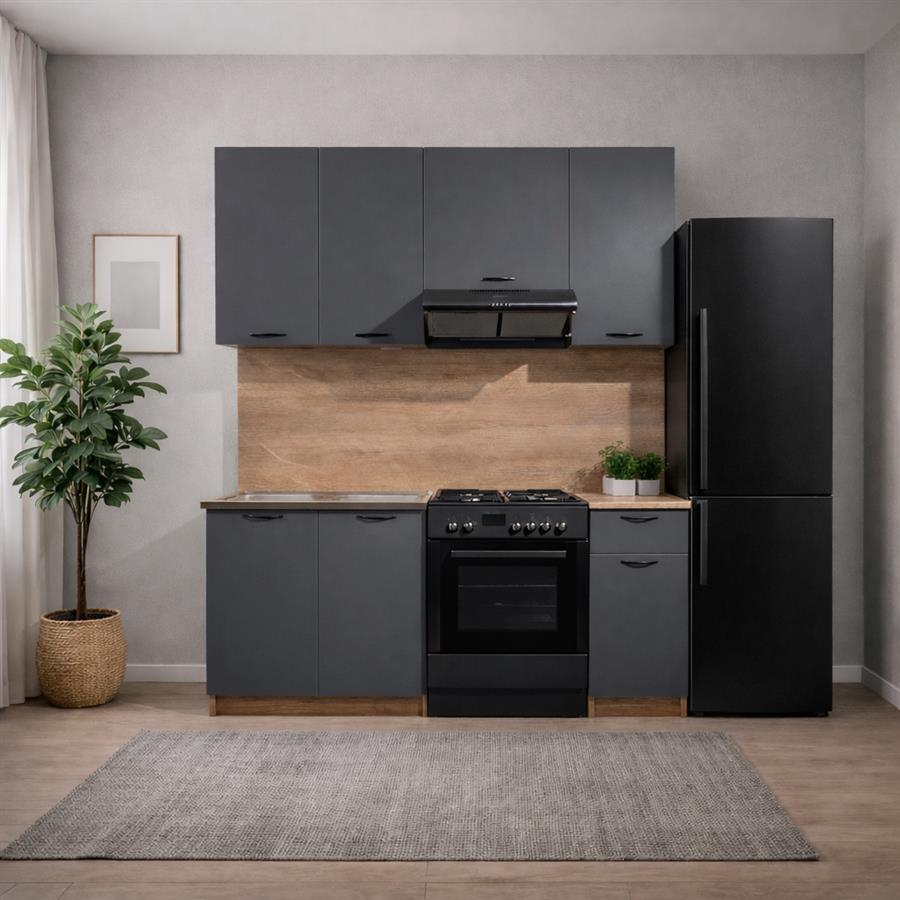 სამზარეულო ავეჯის მზა პატარა კომპლექტი ნაცრისფერი 180სმ SK-M1-GRAY