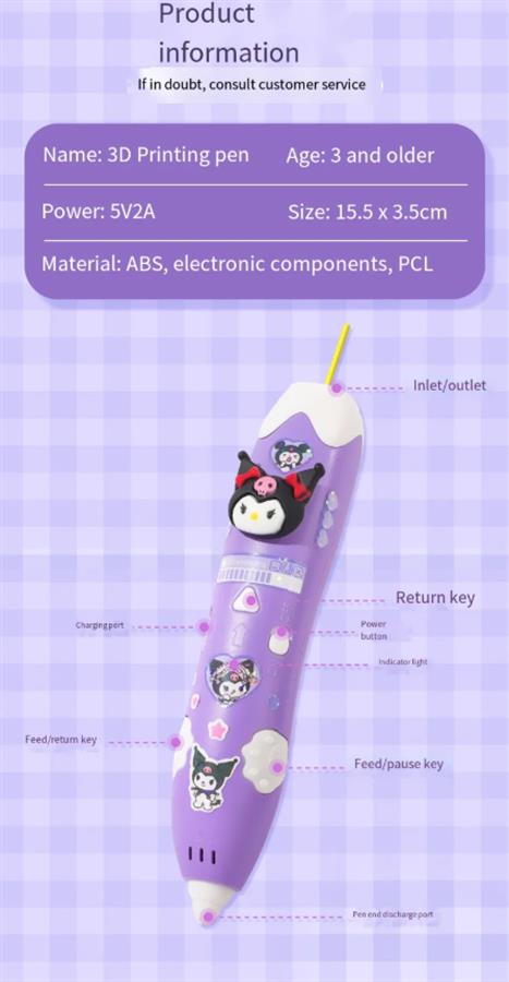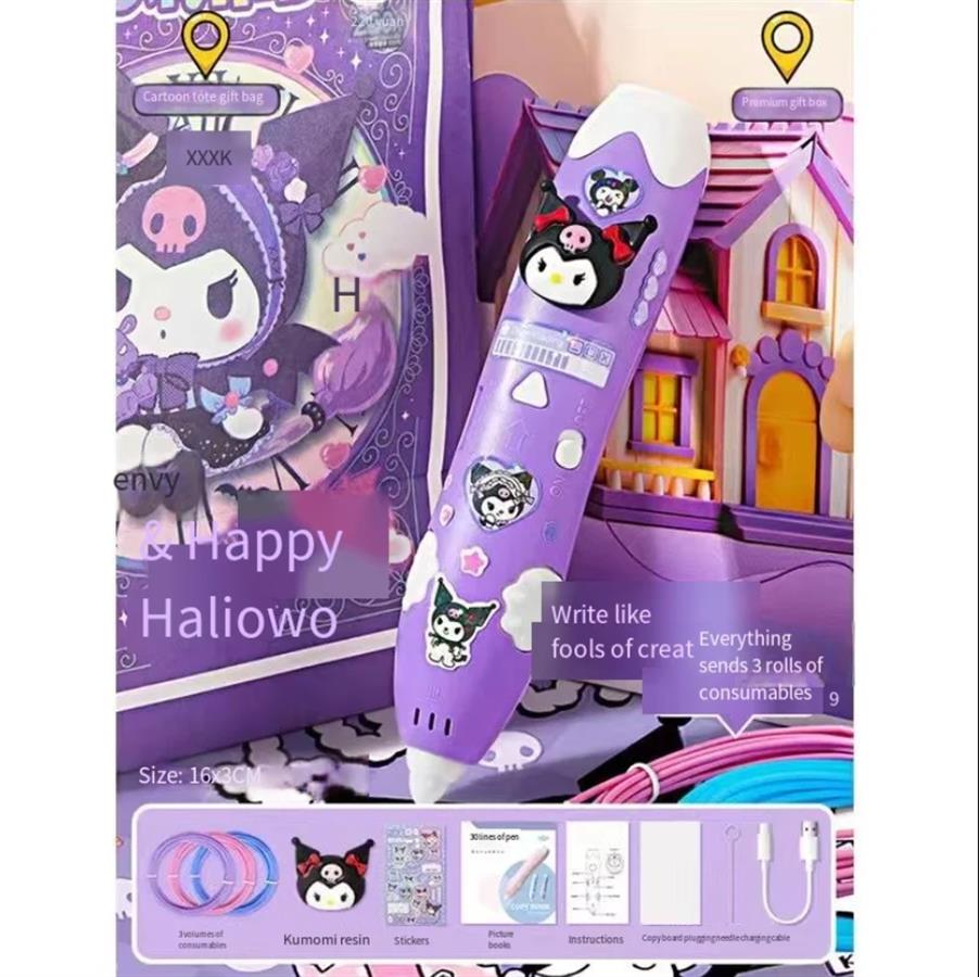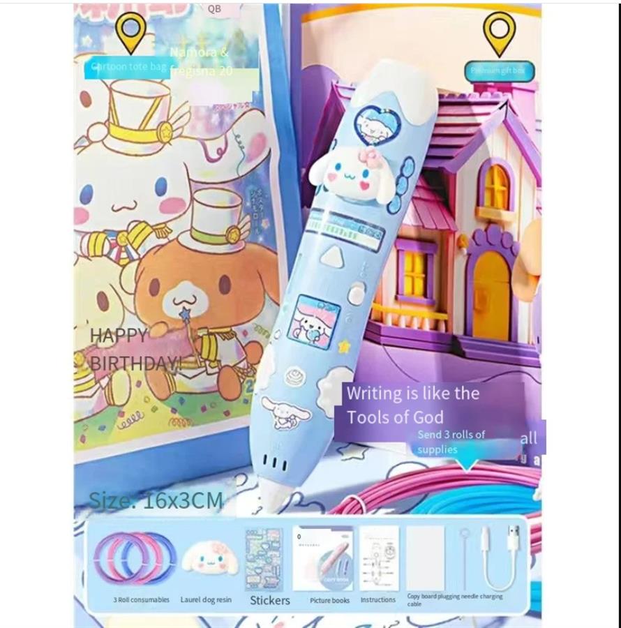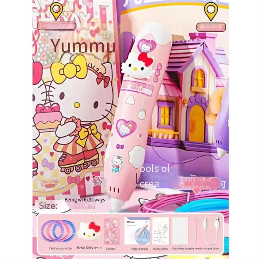 Sanrio 3D ბეჭდვის კალამი ბავშვებისთვის, სტერეოსკოპიული ხატვის კალმის ნაკრები