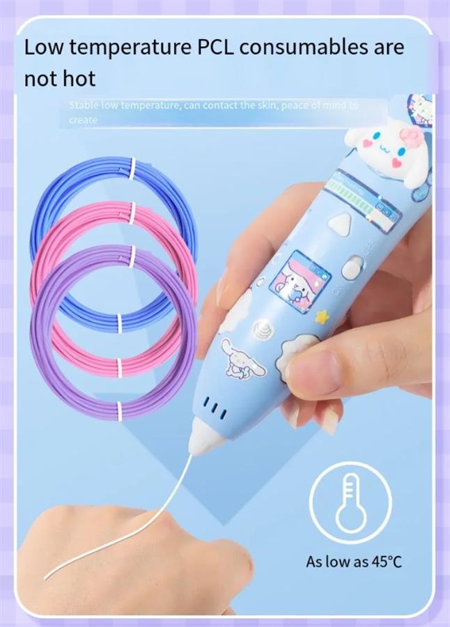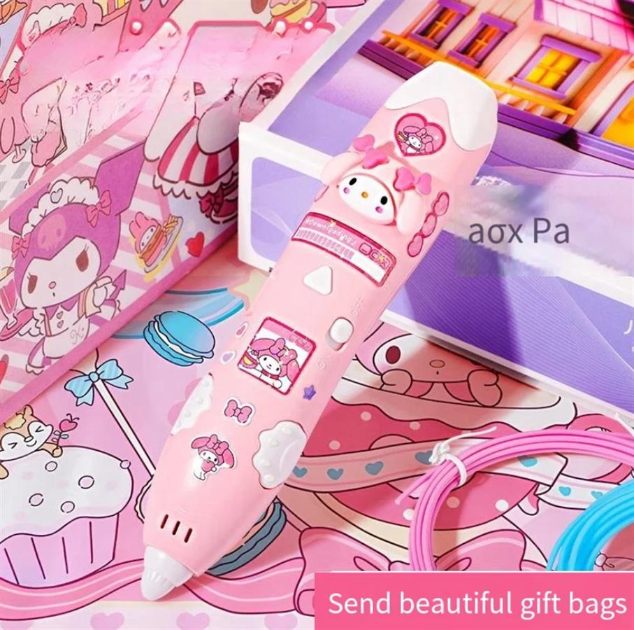 მულტფილმის ანიმე Sanrio 3D ბეჭდვის კალამი ბავშვებისთვის, სტერეოსკოპიული ხატვის კალმის ნაკრები დაბალი ტემპერატურის უსადენო, შემოქმედებითი გრაფიტის სათამაშო საჩუქარი