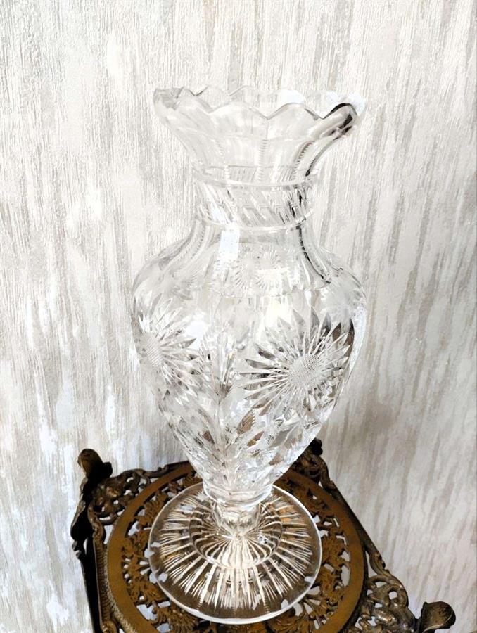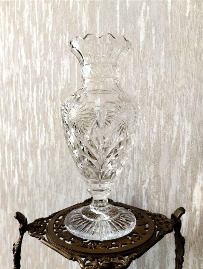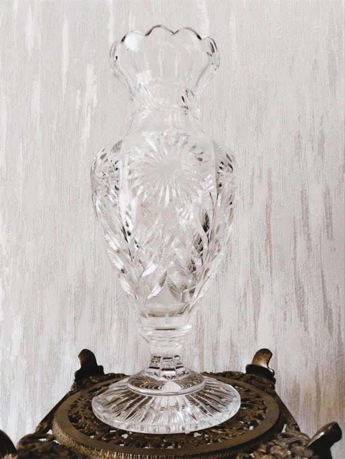 ეს ნივთი წარმოადგენს ელეგანტურ ვინტაჟურ ვაზას, რომელიც დამზადებულია მაღალი ხარისხის ბრილიანტის ჭრის ბროლისგან. კვეთის სტილით თუ ვიმსჯელებთ, ეს არის 1960-იანი და 1980-იანი წლების საბჭოთა ან აღმოსავლეთ ევროპული ბროლის კლასიკური ნიმუში. ბროლის ვაზა „ყური და ვარსკვლავი“