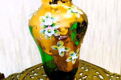 მახასიათებლები: თითოეული წყვილი დამზადებულია სხვადასხვა ფერში (კობალტი, ლალი, ზურმუხტი, ქარვა). მაღალ წახნაგოვან ღეროს აქვს გამორჩეული ნაჭდევები.