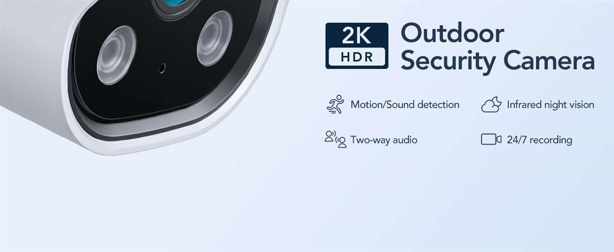 GNCC გარე კამერა, 2K კამერები სახლის უსაფრთხოებისთვის გარეთ, სახლის უსაფრთხოების კამერები, მოძრაობის ამოცნობა, ღამის ხედვა, 24/7 ჩაწერა, ორმხრივი აუდიო, წყალგაუმტარი, ღრუბელი და ლოკალური, დანამატი, APP კონტროლი