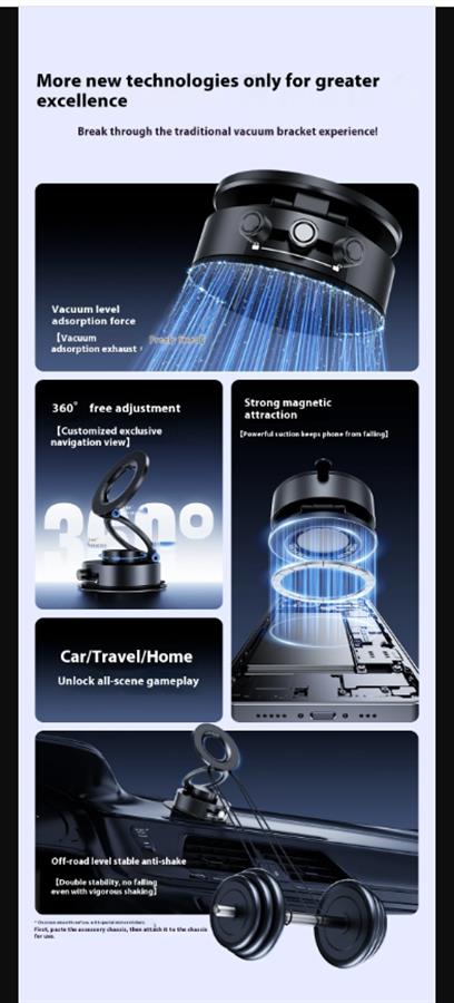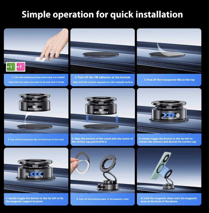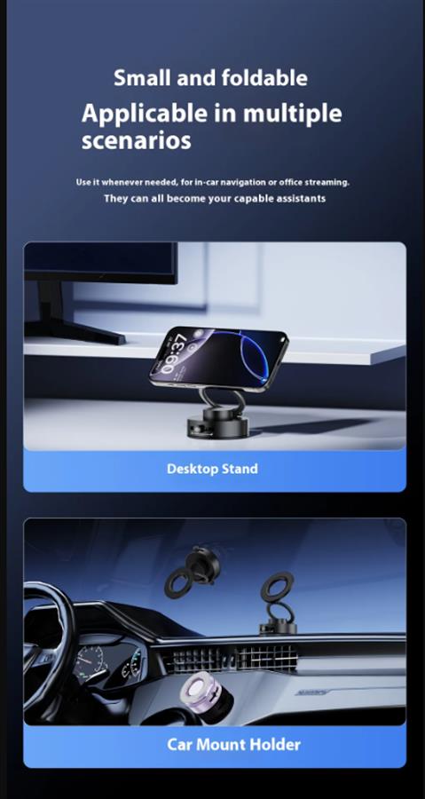 ულტრამაგნიტური ტელეფონის დამჭერი დასაკეცი მანქანის ტელეფონის სამაგრი დაფაზე, ტელეფონის სამაგრი 360 გრადუსით ბრუნვითი ვაკუუმური შემწოვი ჭიქის სადგამით