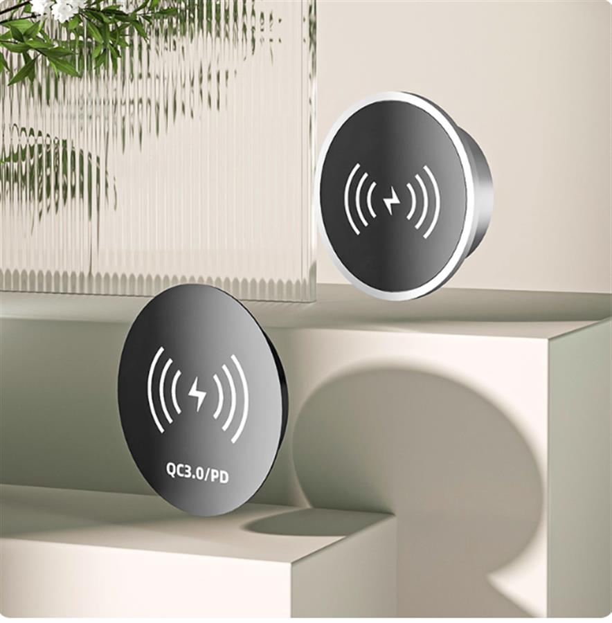 დესკტოპის Qi სტანდარტული უსადენო დამტენი ავეჯისთვის.