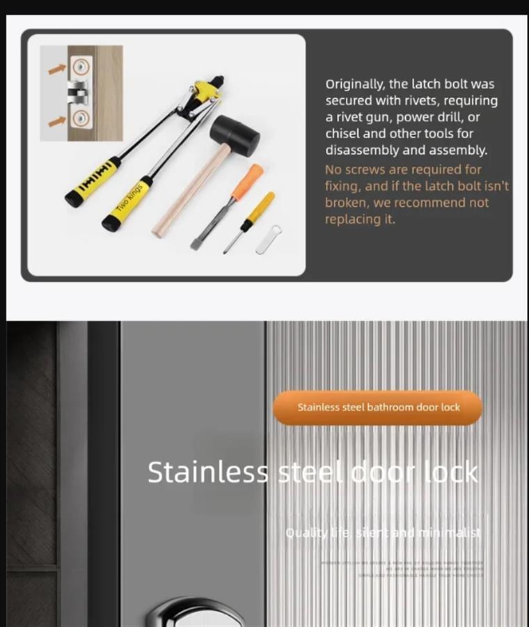 უჟანგავი ფოლადის აბაზანის კარის საკეტი საძინებლის სახელურის გარეშე