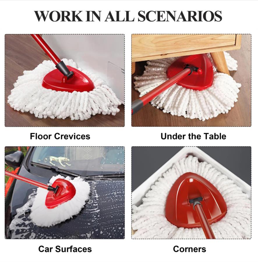 [შესაფერისი იატაკის სხვადასხვა სახეობისთვის]: საწმენდი თავის შესავსები თავი შეიძლება გამოყენებულ იქნას გლუვი ზედაპირის იატაკებზე, როგორიცაა ხის იატაკი, კერამიკული ფილა, ლამინირებული იატაკი, მარმარილოს იატაკი, ხის იატაკი, მინის იატაკი, გლუვი ქვა და სხვა დალუქული მყარი იატაკი. მისი გამოყენება ასევე შესაძლებელია მანქანის გასარეცხად. მშრალი ტილოს გამოყენება შესაძლებელია კედლების ან მტვრით დაფარული სხვა ადგილების ეფექტურად გასაწმენდად.