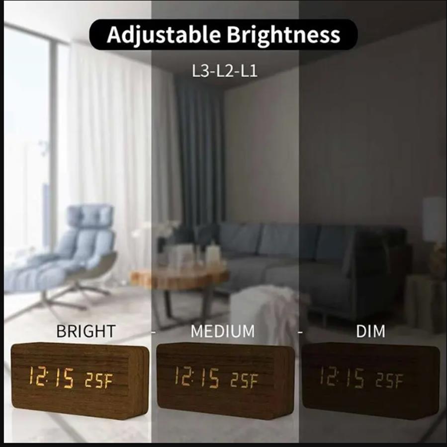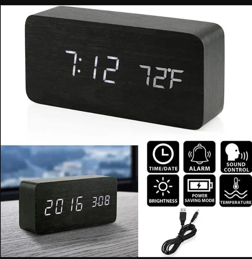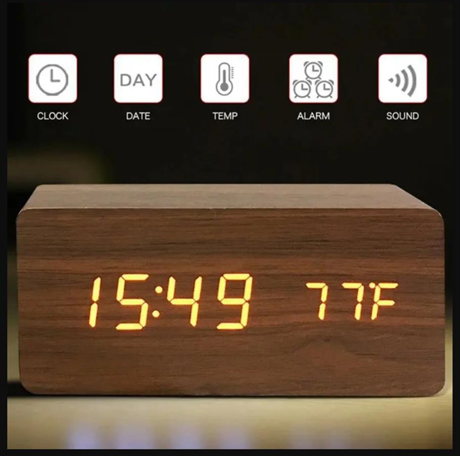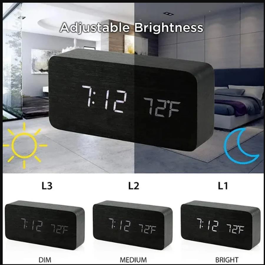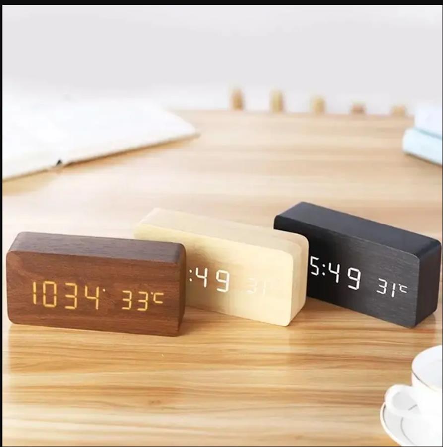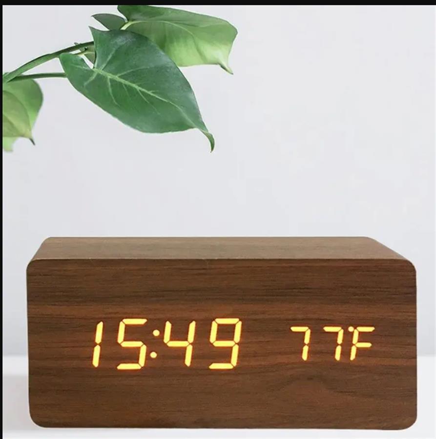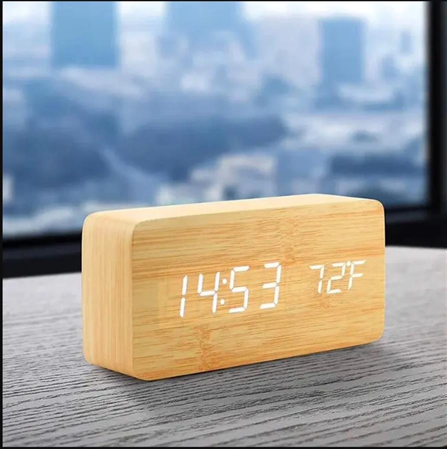 ხის ციფრული მაღვიძარა LED მაგიდის საათი ტემპერატურის მაჩვენებლით საძინებლის ოფისის მაგიდის დეკორაციისთვის