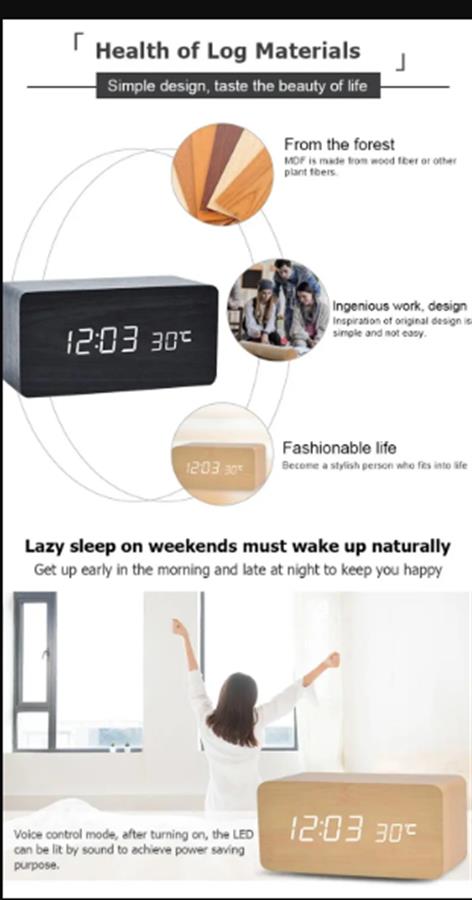 【ბუნებრივი ტექნოლოგიით】 ეს მაღვიძარა ხის იერსახით არის შექმნილი. ეს არ არის მხოლოდ მრავალფუნქციური მაღვიძარა, არამედ თქვენი სახლის მრავალმხრივი დეკორაცია.