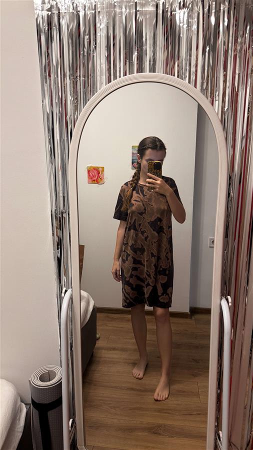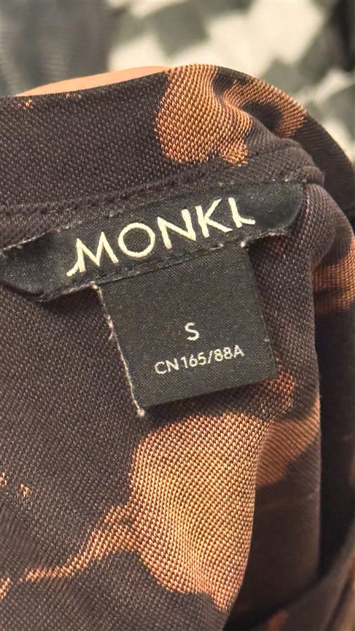 ყავისფერი კაბა Monki, ზომა S-M, კარგ მდგომარეობაში, ნახატი tie-dye Show original