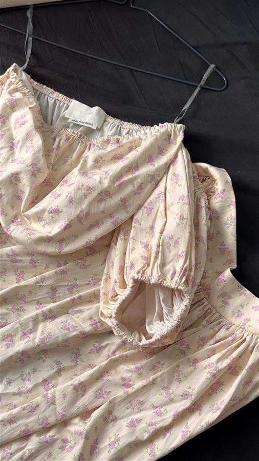 ზაფხულის კომპლექტი: ზედა და ქვედა ნაწილები, შექმნილია ქართველი დიზაინერის, თაკო მექვაბიძის მიერ. უნიკალური, განუმეორებელი კომპლექტი ყვავილების პრინტით. ფერები: პუდრისფერი, ვარდისფერი, ატმისფერი. ზომა: S/M. ერთხელ ჩაცმული ფოტოსესიაზე. იდეალურ მდგომარეობაში. მოყვება ბრენდირებული ჩანთა. Show original