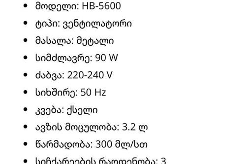 მუშაობის ხმაური: ≤45 დბ