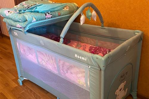 იყიდება ბავშვის საწოლი ახყის ხის მასალის, შეღებილია ანტიალერგიული უმაღლესი ხარისხის საღებავით, მოყვება მატრასი როიალ ჯორჯიაში შეძენილი(მატრასი არის ორმხრივი ორთოპედიული/რბილი), საწოლს ეხსნება რიკულები ორივე მხრიდან, არის ასევე ბორბლებზე რომელიც ასევე ეხსნება, აქვს რწევის ფუნქცია,საწოლი არის იდეალურ მდგომარეობაში, მდებარეობა საბურთალო