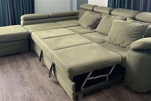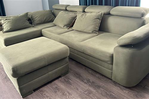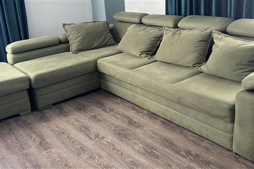 იყიდება მეორადი დივანი და პუფი. დივანი იშლება. აქვს სათავსო. დამატებითი სათავსო აქვს პუფსაც. ზომები: პუფი - 80 სმ /80 სმ, დივანი - 310 სმ / 180 სმ. ფასი 530 ლარი.