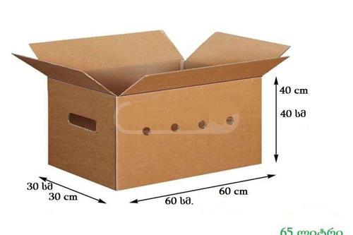 იყიდება კვერცხის "მეორადი" ყუთები. გვაქვს სახელმწიფო სიპებთან, ააიპებთან და სხვა და სხვა დეპარტამენტებთან თანამშრომლობის გამოცდილება. დაკეცილი ყუთის ზომა: 91სმ X 68სმ. აწყობილი ყუთის ზომა: სიმაღლე 40 სმ, სიგრძე 60 სმ, სიგანე 30 სმ. ( 60 X 30 X 40 ) +- 2 სანტიმეტრი ცდომილებით. ეს ზომა არის სტანდარტული დატვირთვისთვის და გადასაზიდად, ამაზე დიდი ყუთის კონსტრუქცია დატვირთვისას იშლება ან იხევა და ხდება უსარგებლო. არის 5 შრიანი, შუა შრე არის გოფრირებული რაც მეტ სიმტკიცეს ანიჭებს ყუთს მოხრის/გადაკეცვის ადგილებში. გამოიყენება მრავალი დანიშნულებით. საარქივე მასალის შესანახად, ნივთების გადასატანად, მშრალ სამაცივრე პირობებში პროდუქტის შესანახად, რემონტის დროს იატაკზე დასაფენად და სხვა. ყუთს აქვს ხელის მოსაკიდი ღიობები. ყუთები ინახება დაკეცილი, ტრანსპორტირებისთვის მზად. 1ცალი ყუთის ფასი = 3.50 ლარი. ფასი არის ფიქსირებული და დიდი/მცირე რაოდენობის შესყიდვის შემთხვევაში ფასი უცვლელია. იგივე ზომის ყუთის ფასი გროგიაში: 15.50₾. დომინუში: 8₾ . მუდოსში 10₾ . მისამართი: აფრიკის დასახლება, ლუკა რაზიკაშვილის ქუჩა. (შემოსასვლელი კაიროს ქუჩიდან.) ჩიხი 69 და 71 ნომერს შორის. (https://maps.app.goo.gl/q44f2fwdYTnv1dep8 ) ( KEYWORDS KEY WORDS WORD ყუთი ყუთები cardboard box იაშიკი კარობკა კაროფკა მუყაოს კარდონის კვერცხის ყუთი რემონტი ავეჯის გადაზიდვა ტრანსპორტირება ნაგვის გატანა დასუფთავება დალაგება გადასვლა გადაბარგება samsung iphone apple xiaomi lenovo hp adidas nike reebok puma იაფად, სასწრაფოდ )