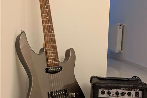 შესანიშნავი ვარიანტია დამწყებთათვის და მათთვის, ვისაც სურს დაუკრას ელექტროგიტარაზე პირდაპირ ყველაფერი უკვე კომპლექტშია.