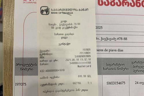თვითგატანა თბილისიდან ან მიწოდება შეთანხმებით.