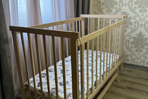 ეხსნება ერთი მხარე და შესაძლებელია დედის საწოლთან მისადგამად გამოყენება.ლეიბი საჩუქრად.