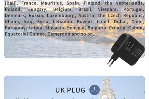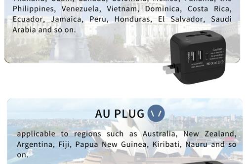 PD20W უნივერსალური სწრაფი დამუხტვის სამოგზაურო ადაპტერი 2 USB პორტით, Type-C მრავალფუნქციური ევროპისთვის, აშშ სინგაპური, ავსტრალია, სოკეტი