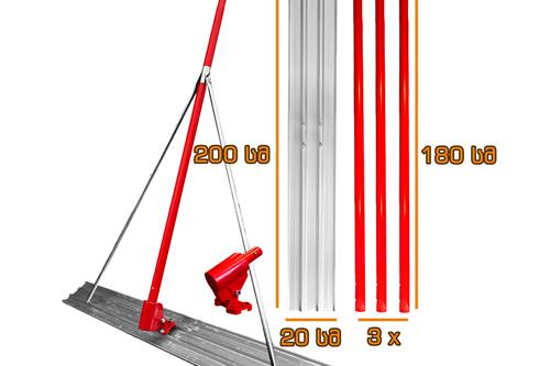 ალუმინის-მაგნიუმის შენადნობი სასწორებელი უთო. არის მჩატე აქვს სიგრძის რეგულირების შესაძლებლობა შესასრულებელი სამუშაოს მიხედვით.ასევე აქვს რედუქტორი რითაც სახელურის გადატრიალებისას იცვლება პირის მდგომარეობა. ერთი სახელურის სიგრძე შეადგენს 180 სმ-ს მოყვება 3 სახელური რითაც შეგიძლიათ გაშალოთ 540 სმ-მდე. არის ძალიან მარტივად ასაწყობ დასაშლელი.