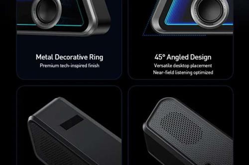კომპაქტური საუნდბარის დიზაინი: იდეალურად თავსდება მონიტორის ქვეშ, რაც ზოგავს ადგილს მაგიდაზე.